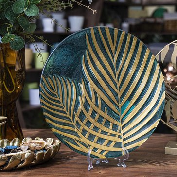 - Блюдо декоративное круглое Лист 35х7,5х35 стекло голубой