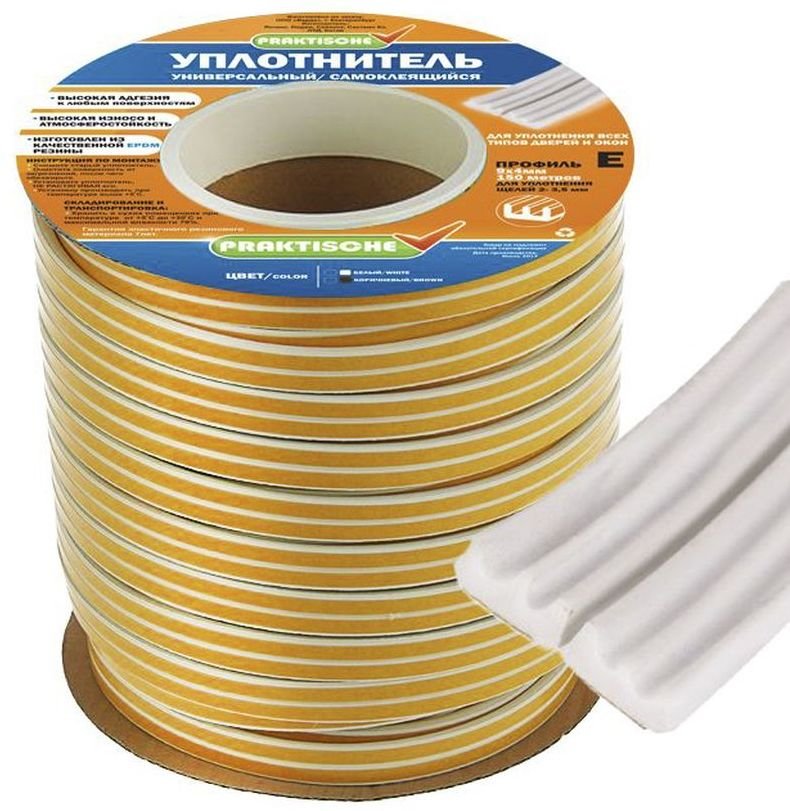 - Уплотнитель самоклеящийся PRAKTISCHE HOME 9х4мм Е-150м белый