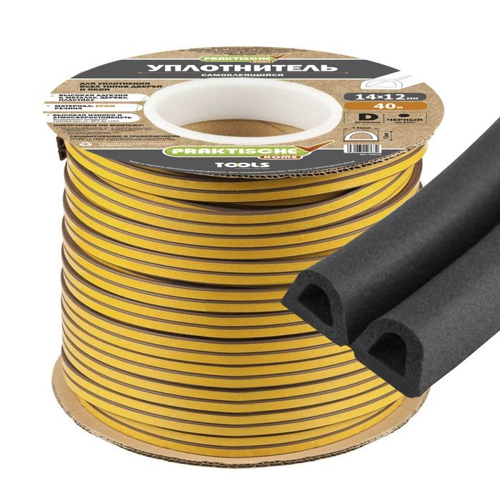 - Уплотнитель самоклеящийся для дверей PRAKTISCHE HOME 14х12мм D-40м черный