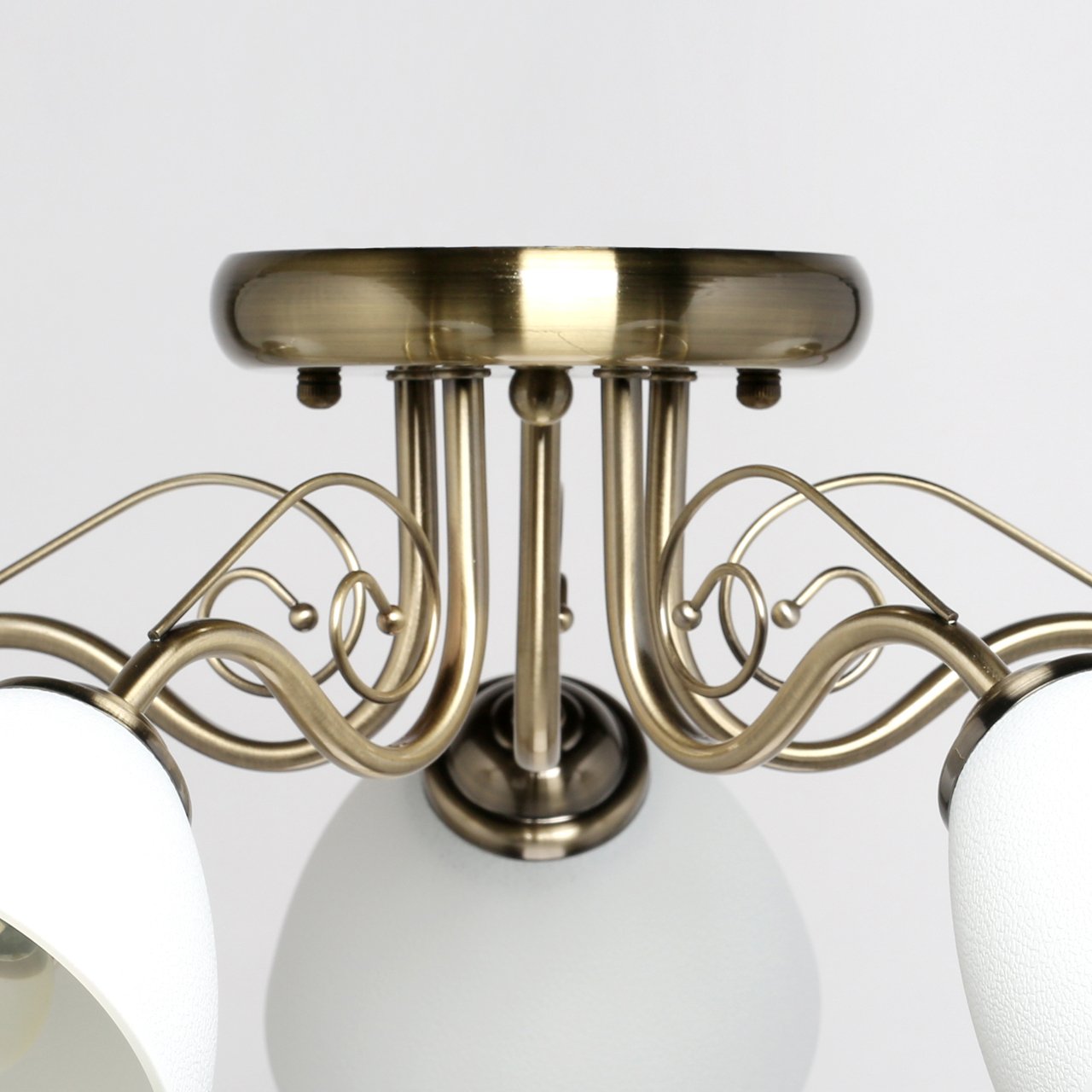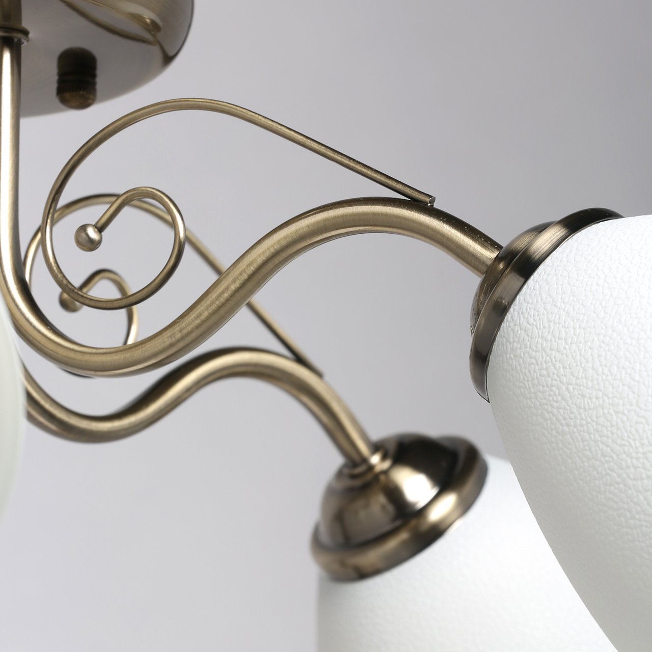 Люстра «Грация» — изящное осветительное изделие, которое привносит в интерьер ноту утончённой элегантности. Её дизайн сочетает благородную бронзовую металлическую основу с белыми стеклянными элементами, создавая гармоничное сочетание прочности и воздушности.