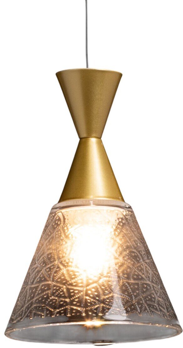 • Двойные плафоны: матовое стекло округлой формы дополнено металлическим абажуром в тон основанию, что создаёт уникальный визуальный эффект.