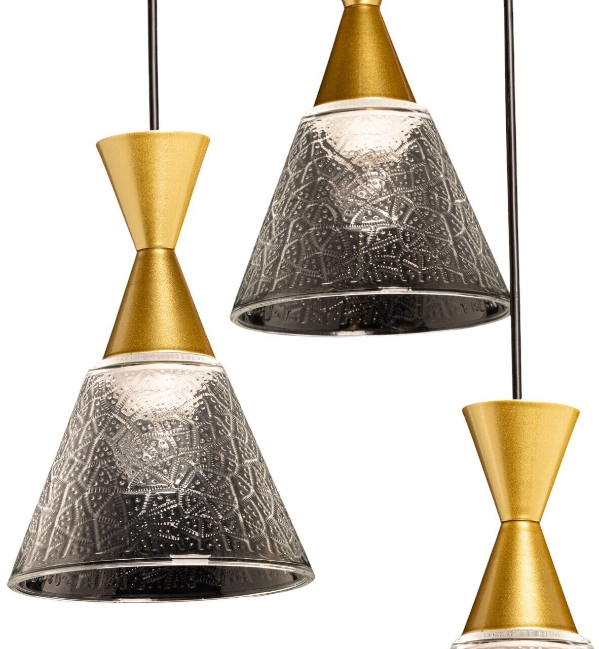 Люстра De City «Лоск» 3×40 W E27 (металл, стекло, чёрный/золото) — это подвесная модель с оригинальным дизайном, сочетающим матовое металлическое основание чёрного цвета и элементы, окрашенные в цвет перламутрового золота. Плафоны выполнены из матового стекла с имитацией кожи рептилий, что придаёт люстре изысканность и современный вид.