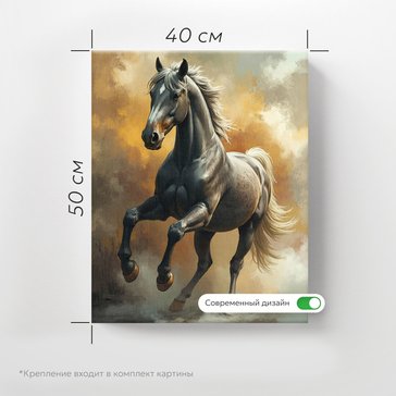 Картина на канвасе «Лошадь» размером 40×50 см притягивает взгляд сдержанной, но выразительной трактовкой образа. В центре композиции — силуэт лошади, переданный лаконичными, но точными мазками. Художник избегает излишней детализации, оставляя простор для воображения: зритель сам дорисовывает в уме грацию движений, блеск глаз, трепет ноздрей. Мягкие тона и плавные переходы создают ощущение спокойствия и внутренней силы.