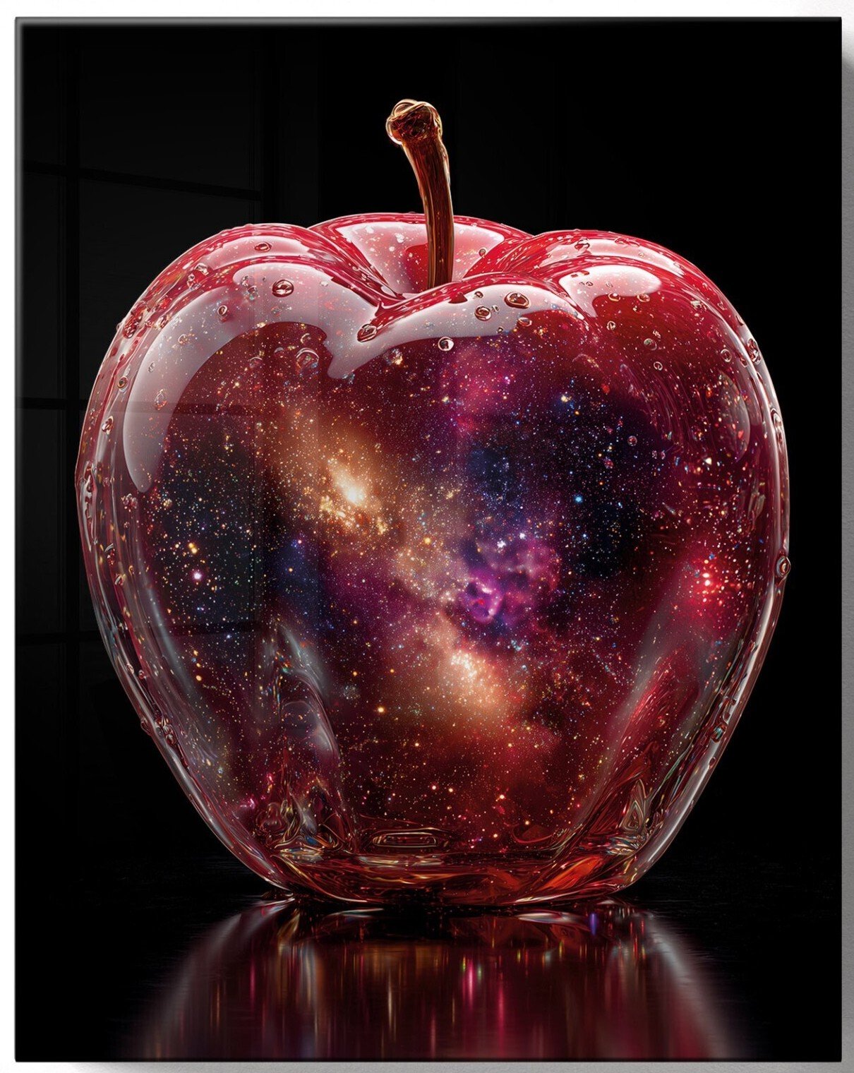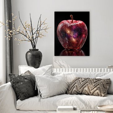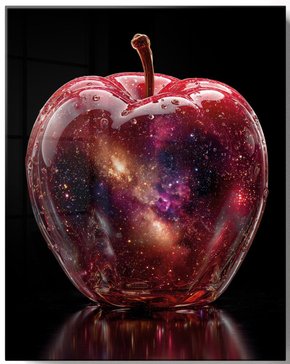 Картина на стекле «Звёздное яблоко» — завораживающее произведение, способное преобразить любой интерьер. В центре композиции словно парит яблоко, окутанное сиянием звёздного неба. Его контуры мягко растворяются в космической глубине, а поверхность переливается оттенками ночного космоса, будто впитала в себя свет далёких галактик.