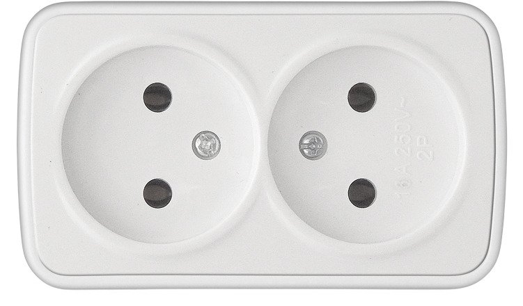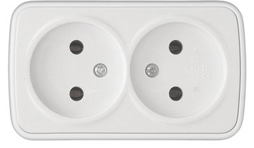 Розетка двойная накладная Электра IP20 10А без заземления цвет белый