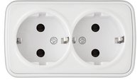 Розетка двойная накладная Электра IP20 16А с заземлением цвет белый