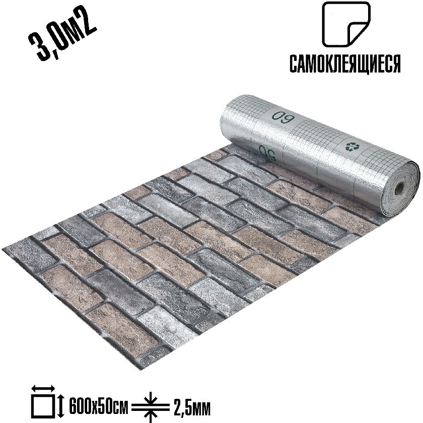 - Обои самоклеящиеся ПВХ LAKO DECOR Кирпичная кладка серый 500х6000х2,5мм (рулон 3м²)