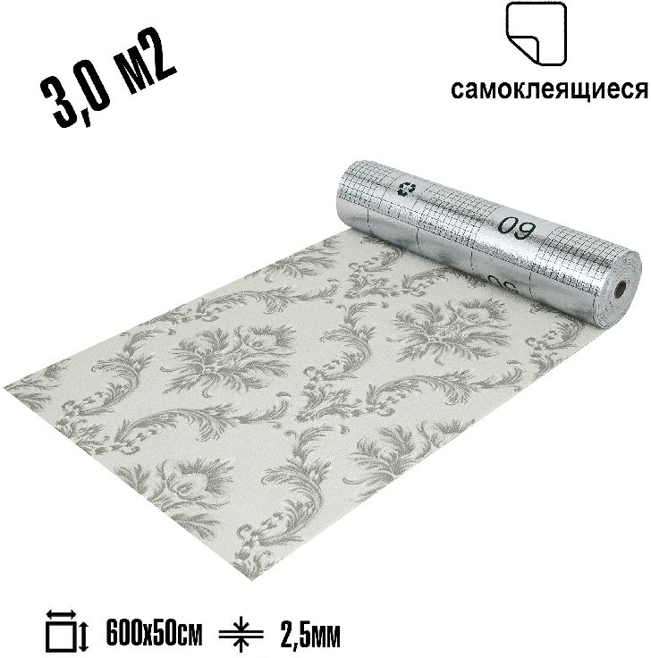 - Обои самоклеящиеся ПВХ LAKO DECOR Барокко серый 500х6000х2,5мм (рулон 3м²)