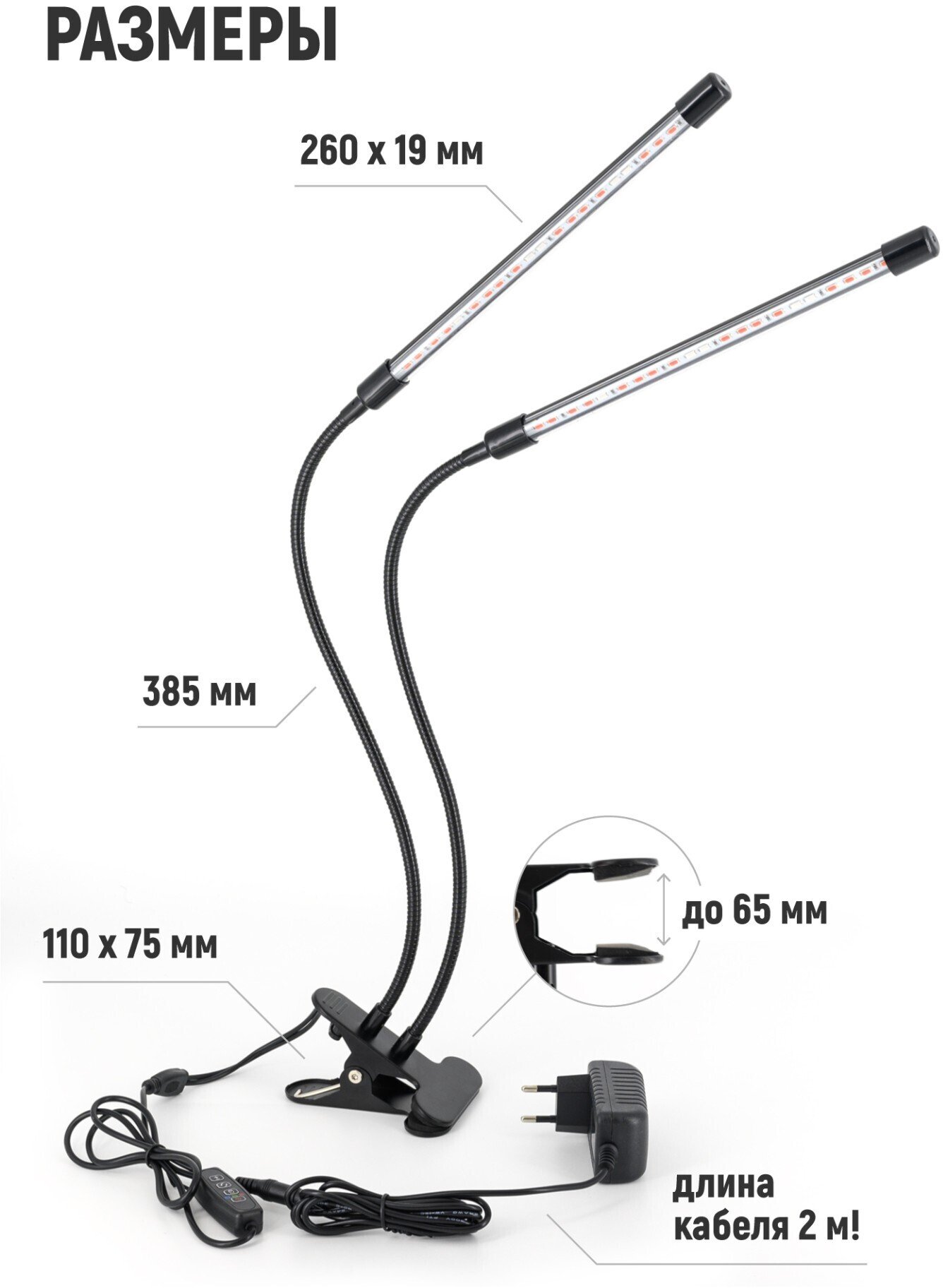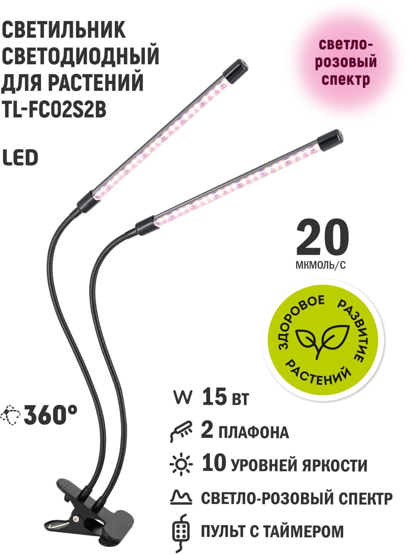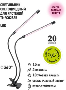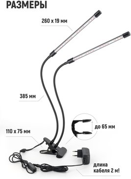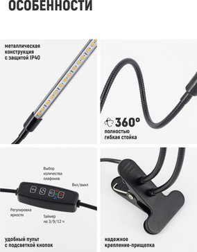 - Фитосветильник светодиодный для растений на прищепке (4 плафона на гибких стойках) ARTSTYLE TL-FC02S2B черный