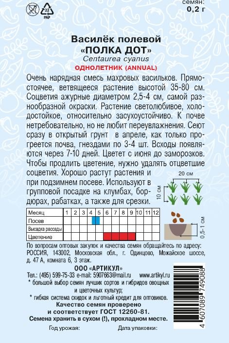 - Семена Василек полевой Полка Дот 0.2г