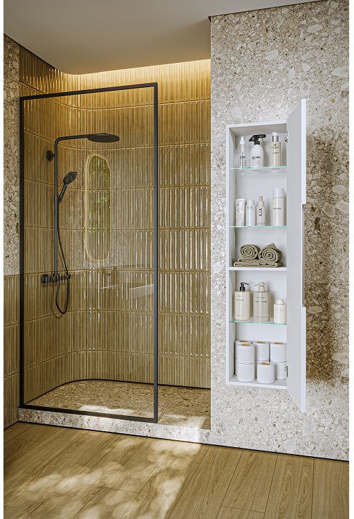 В коллекции представлены стильные пеналы - практичное решение для хранения в ванной комнате.