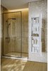 Особенность дизайна - стеклянные полки, которые не только делят пространство на функциональные зоны, но и придают интерьеру изысканный вид.