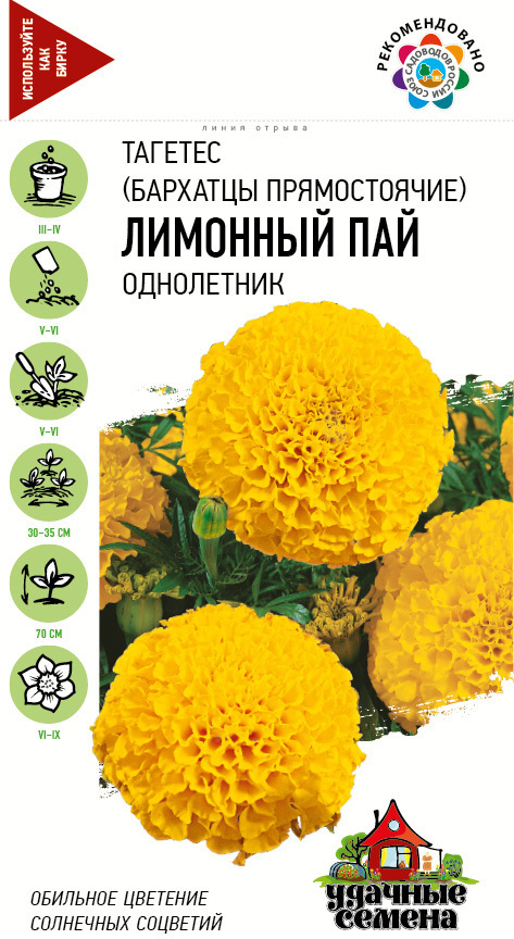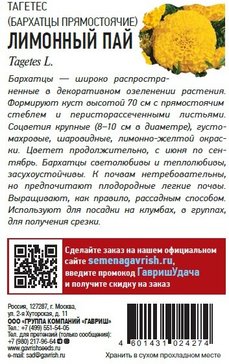 - Семена Бархатцы прямостоячие Лимонный пай (Тагетес) 0,1г
