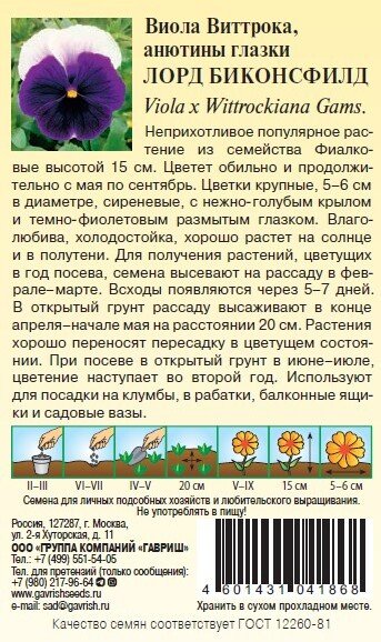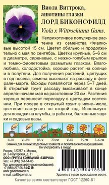 - Семена Виола Лорд Биконсфилд Виттрока 0,05г