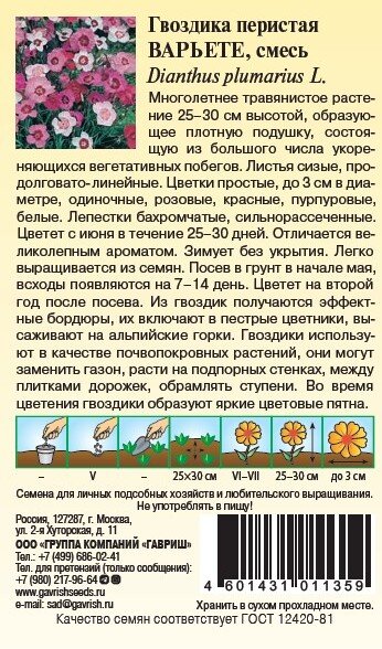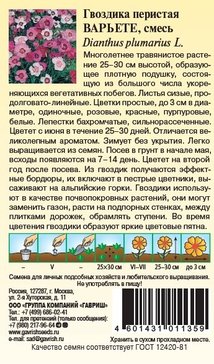 - Семена Гвоздика перистая Варьете смесь 0,1г