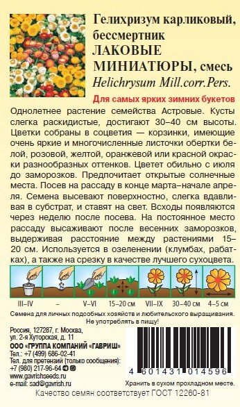 - Семена Гелихризум Лаковые миниатюры карлик 0,1г