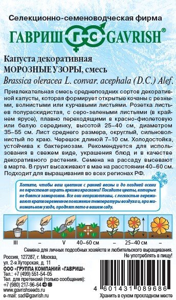 - Семена Капуста декоративная Морозные Узоры смесь 0,05г