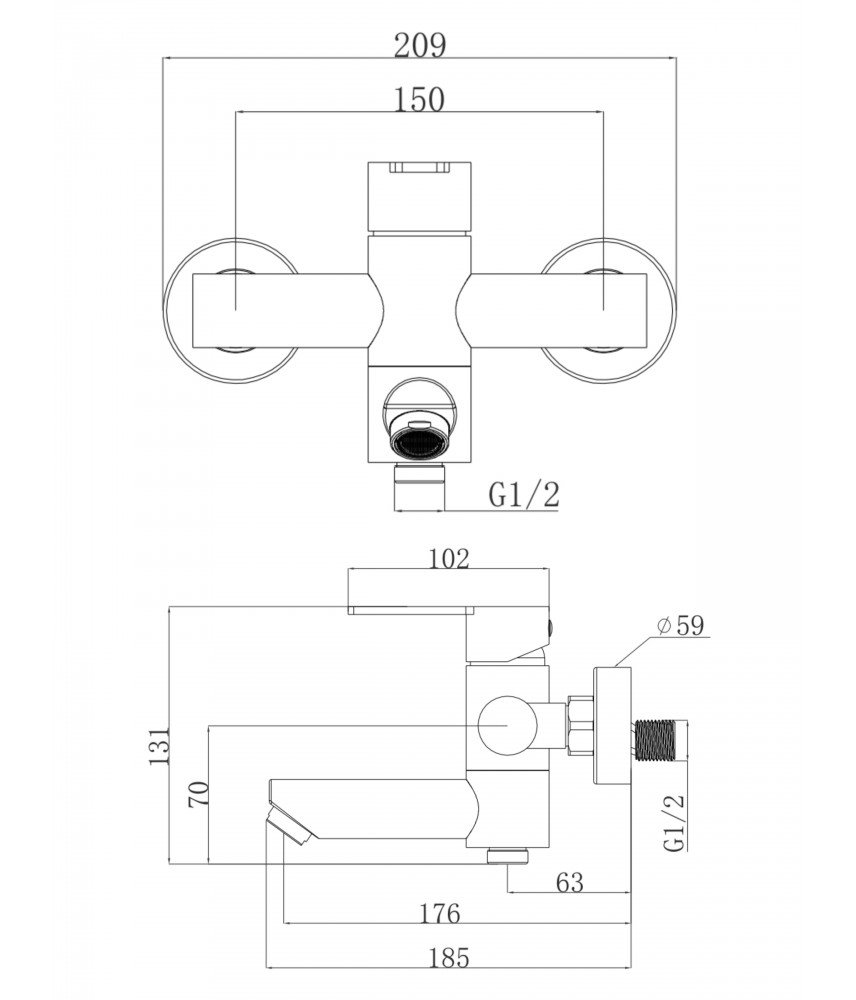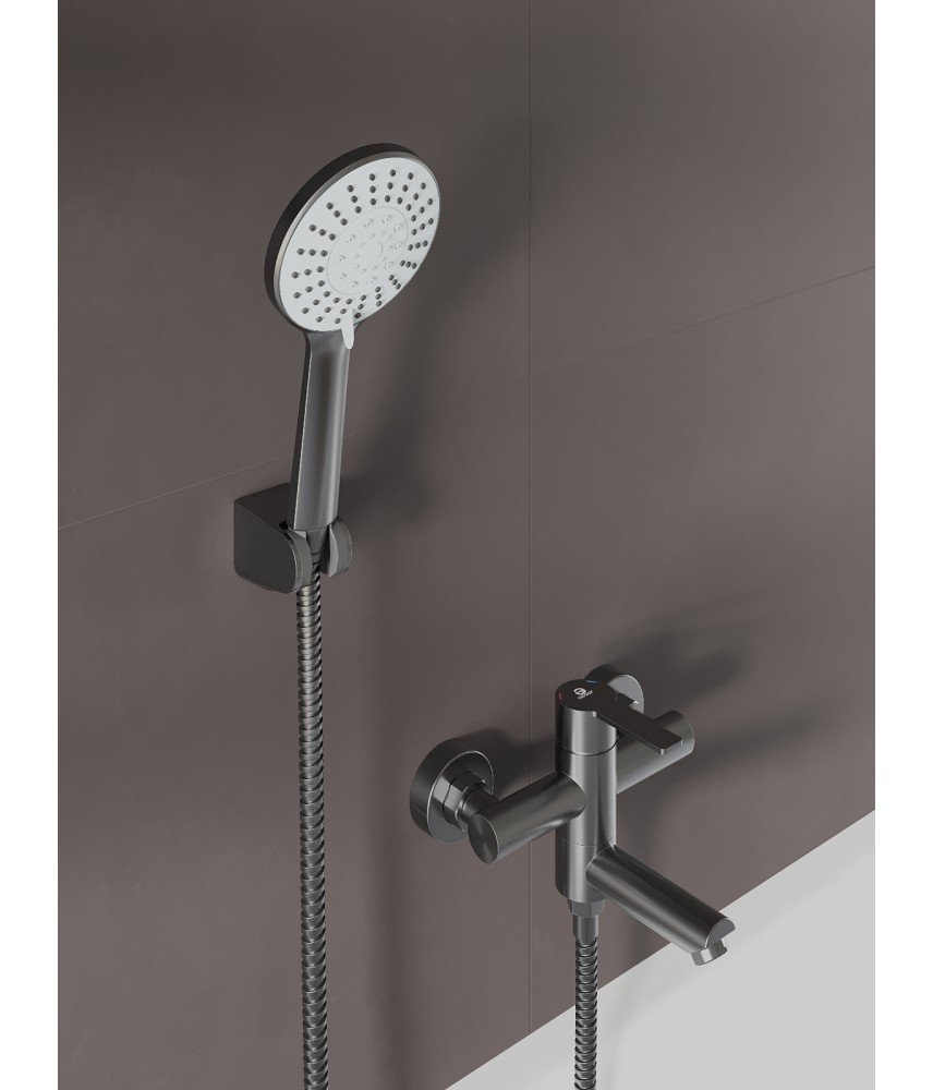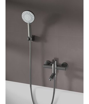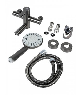 - Смеситель для ванны Agger Easy A3121255 в комплекте с душевыми аксессуарами, оружейная сталь матовая