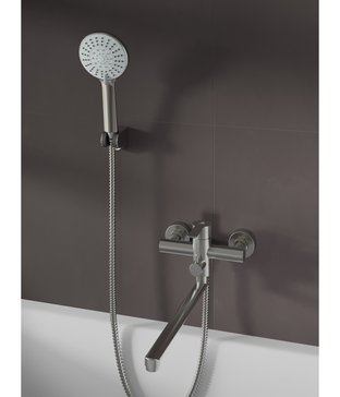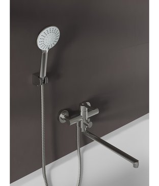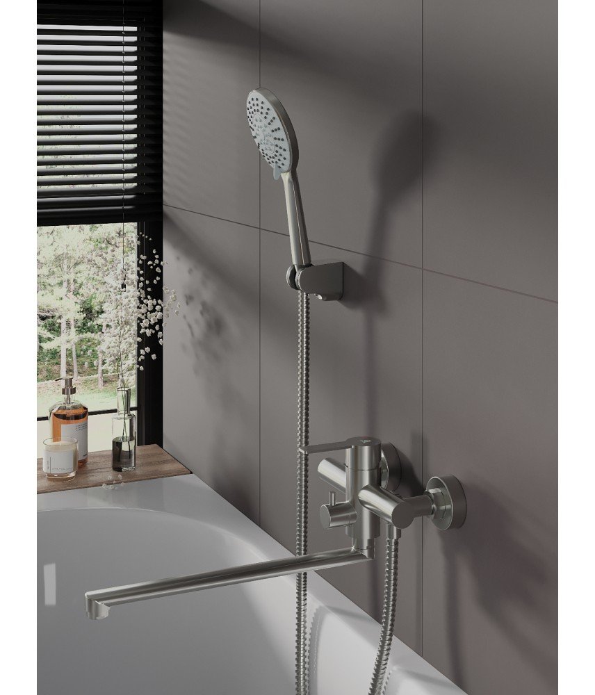 - Смеситель для ванны Agger Easy A3121122 в комплекте с душевыми аксессуарами, сатин матовый