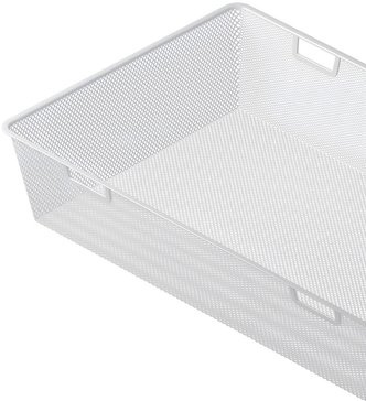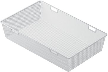 Просторная мелкосетчатая корзина Larvij белого цвета с увеличенной высотой для организации хранения в широких корпусах шкафов. Размеры 89,3х55,5х18,5 см разработаны специально для установки в корпуса шириной 100 см и глубиной 58 см. Мелкоячеистая сетка предотвращает выпадение мелких предметов, а увеличенная высота позволяет хранить более крупные вещи.