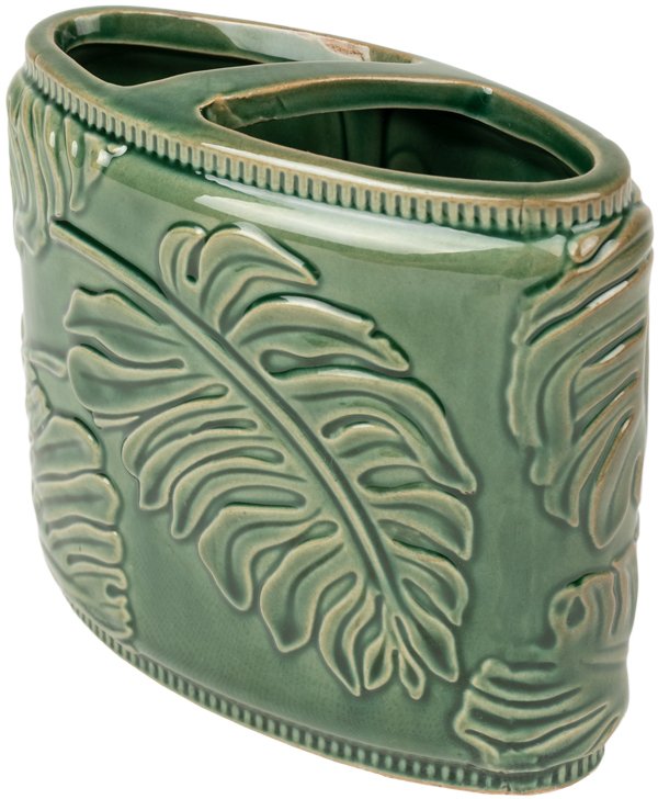 Подстаканник для зубных щеток «Ливия» — изящный акцент для вашей ванной комнаты. Керамическая емкость с рельефным рисунком в виде листьев растений привносит в интерьер природную гармонию и утончённость. Продуманные вырезы в верхней части надёжно разделяют щётки, обеспечивая гигиеничность и порядок.
