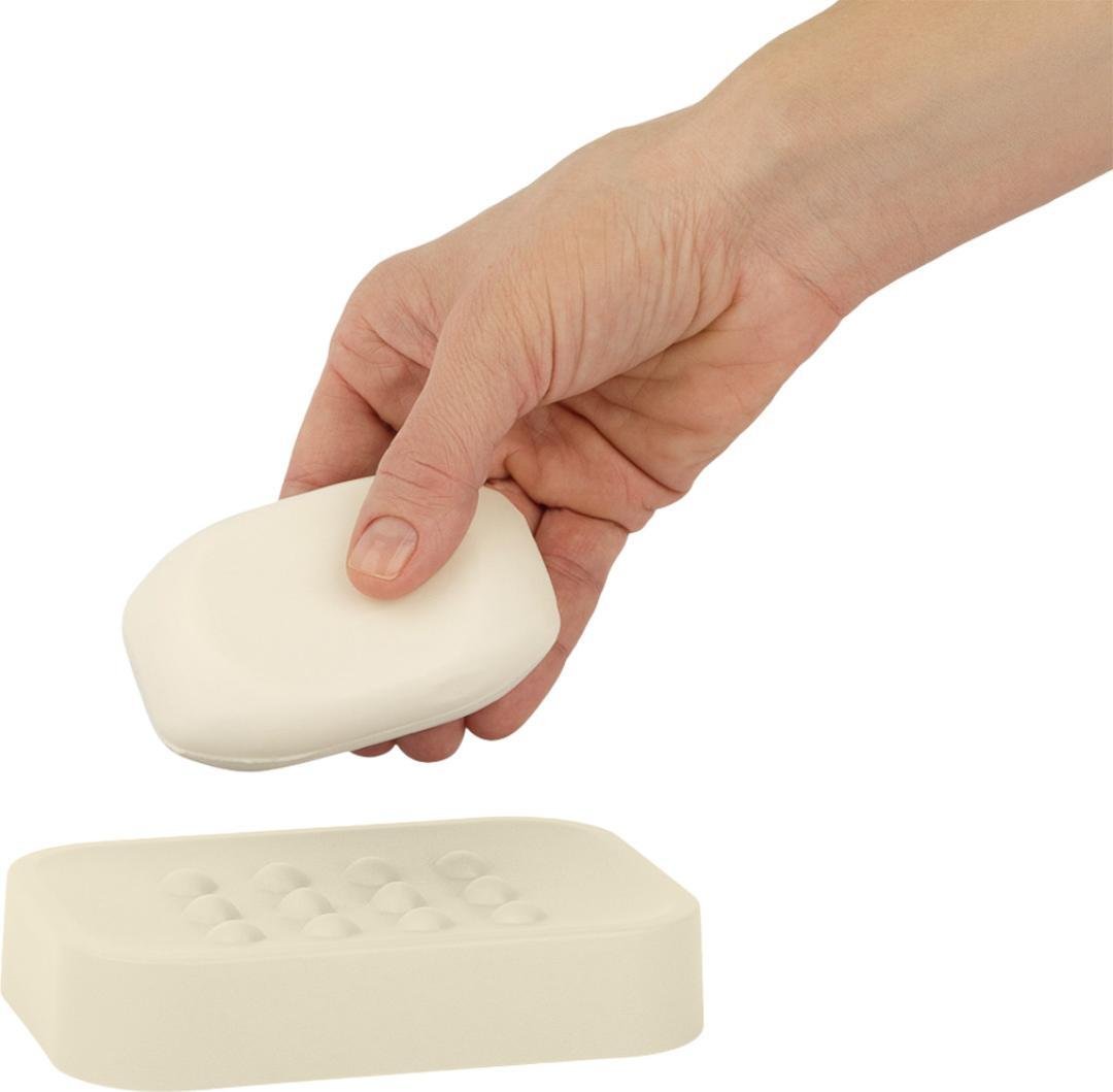 Специальные бороздки и приподнятое дно обеспечивают сток воды, позволяя мылу быстро высыхать, не размокать и служить дольше, что делает использование более гигиеничным и экономичным.