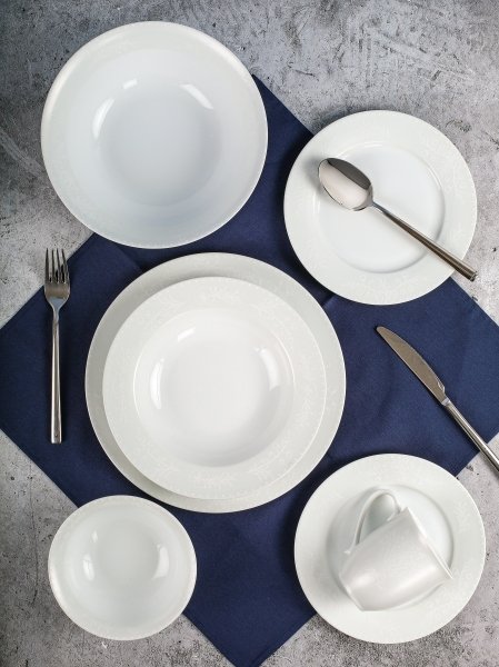 Представьте, как обычный обед превращается в маленькое эстетическое путешествие — именно такой эффект создаёт суповая тарелка Domenik Tableware Spring Romance диаметром 23 см. Нежный белый фарфор и изысканные очертания дарят ощущение свежести и лёгкости, напоминая о пробуждении природы.
