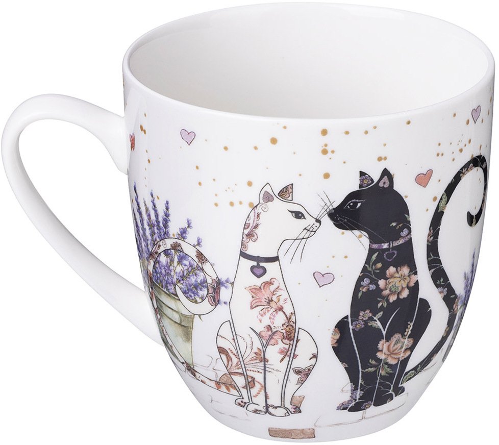 Очаровательный дизайн. Лавандовые оттенки в сочетании с милыми котиками создают неповторимую атмосферу уюта и безмятежности. Каждый элемент рисунка проработан с любовью к деталям — разглядывать их так же приятно, как и пить из этой чашки.