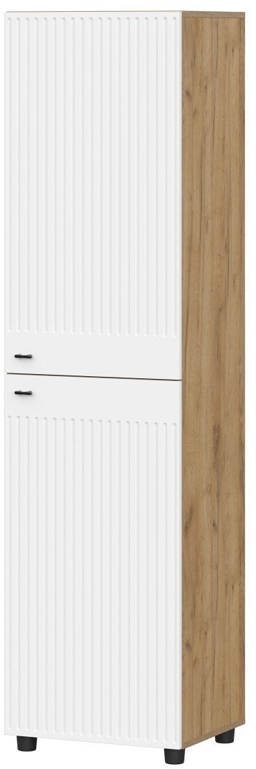Вертикальный шкаф для максимально эффективного использования высоты помещения. При скромной ширине 50 см он достигает высоты почти 2 метров (191,4 см), предлагая огромный объем для хранения вещей, которые редко используются, или для сезонной одежды. Является идеальным решением для малогабаритных квартир, прихожих или комнат, где каждый сантиметр на счету, выполняя при этом декоративную функцию благодаря двухцветному фасаду.