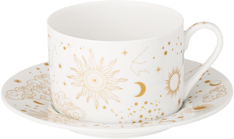 TM LEFARD представляет элегантную коллекцию “Astronomy” из белоснежного упрочненного фарфора. Изящное изображение солнца, мерцающие звезды, созвездия и облака создают атмосферу тепла и уюта, превращая обычное чаепитие в момент вдохновения. Коллекция представлена чайными и кофейными парами, кружками, чайником и сахарницей, блюдом для сладкого. Красочная упаковка, прекрасный подарок для мечтателей и романтиков, любящих все необычное и прекрасное. Посуда прошла сертификацию и подходит для контакта с пищевыми продуктами, легко моется в посудомоечной машине и может использоваться в микроволновой печи.