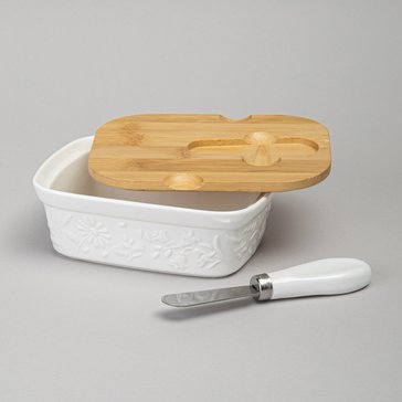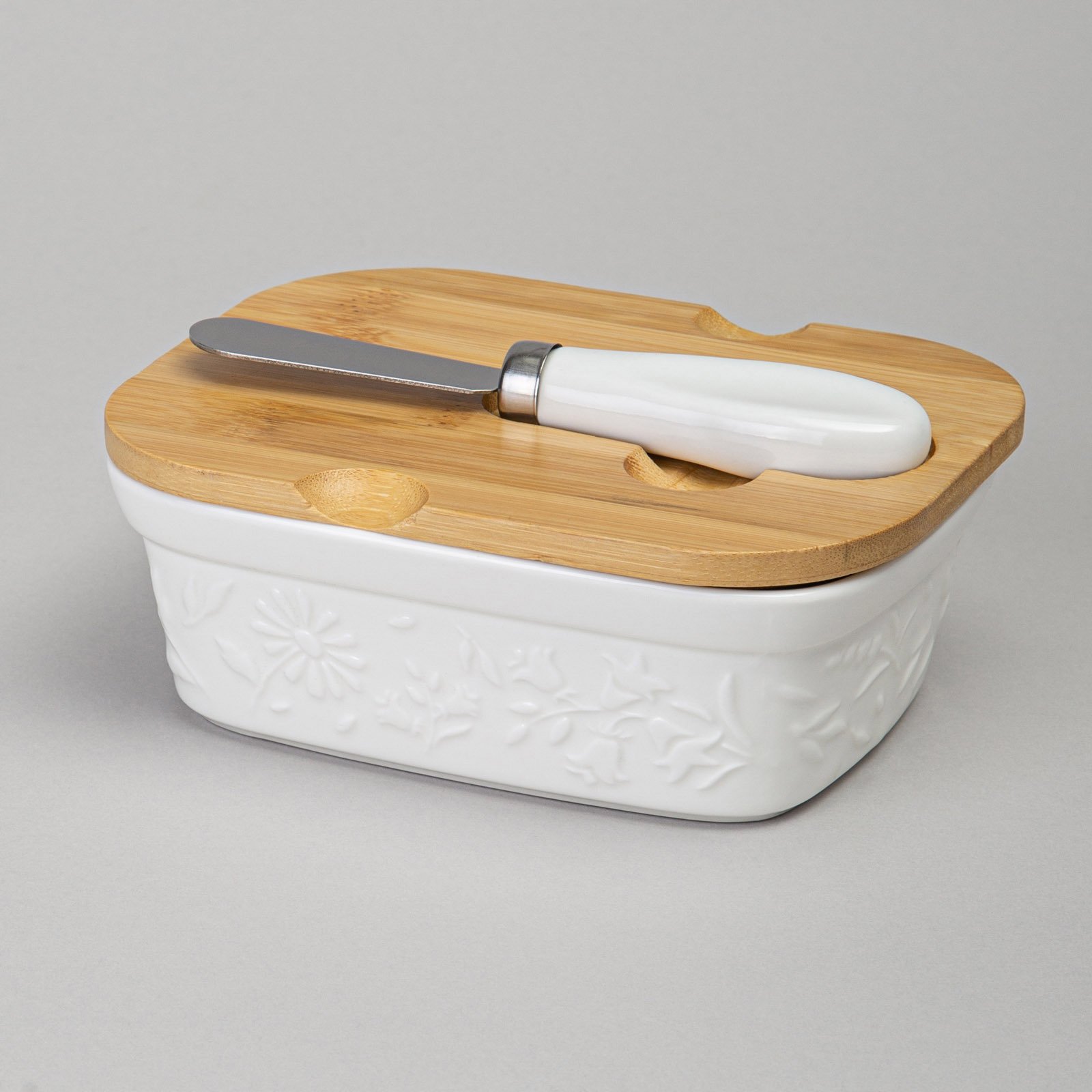 - Масленка Lefard Flowers story 15х11х6см белый, фарфор, крышка бамбук, нож нерж.сталь