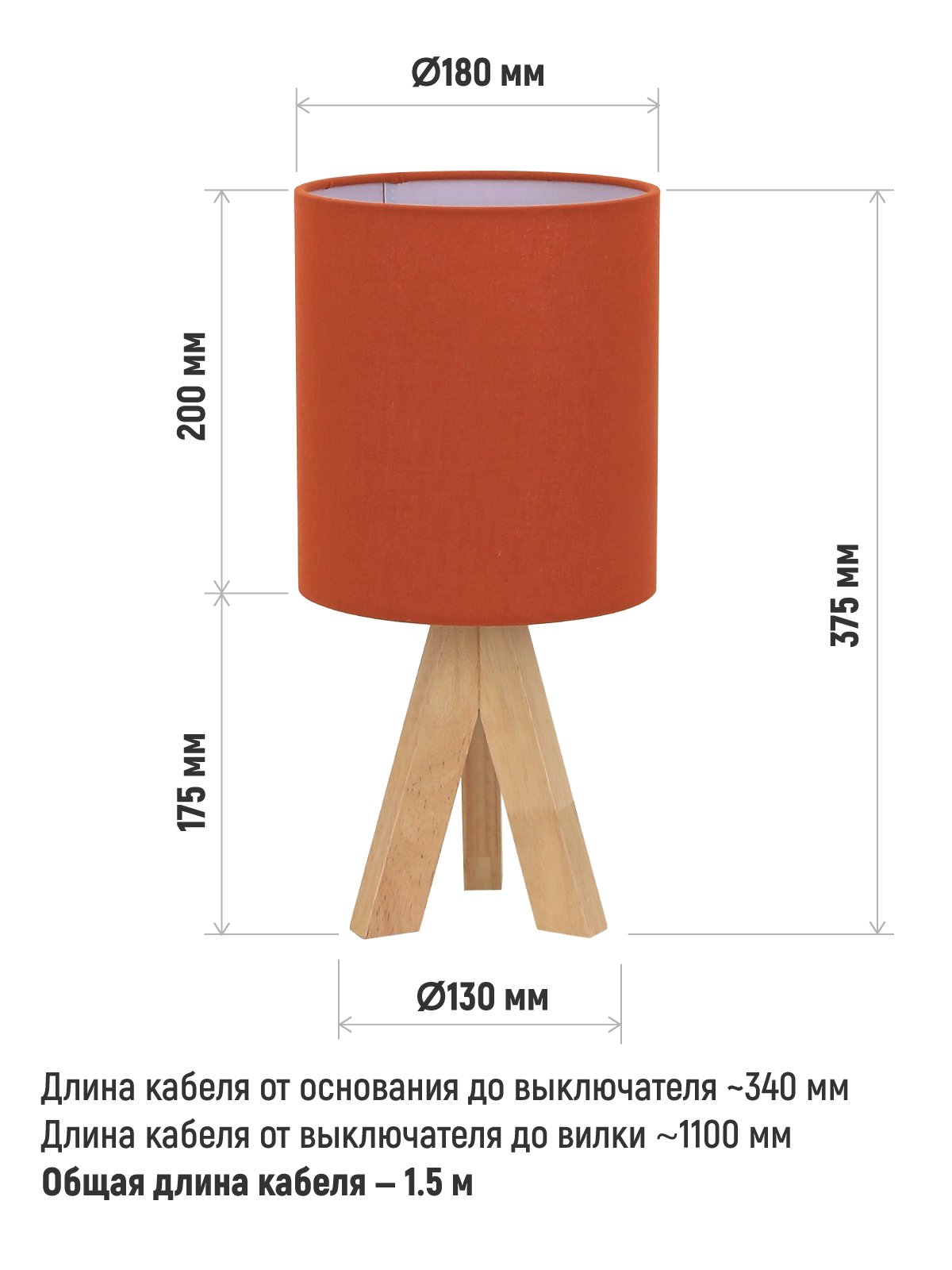 - Светильник настольный ARTSTYLE HT-723O E27 оранжевый, дерево/ткань