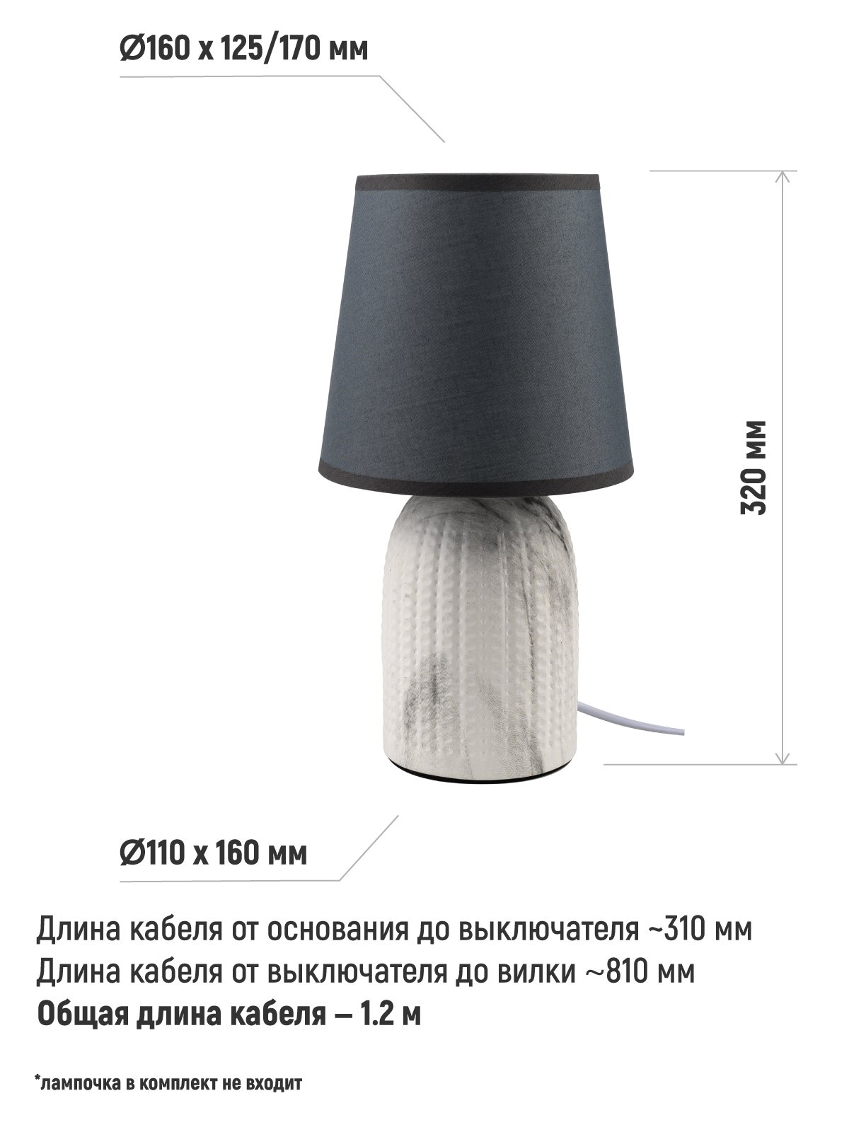 - Светильник настольный ARTSTYLE HT-529WGY E14 белый/серый, керам./ткань