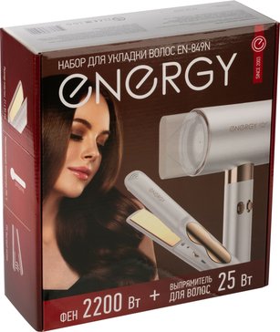 - Набор для укладки волос фен+выпрямитель Energy EN-849N 2200+25Вт белый