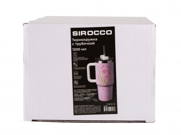 - Термокружка Sirocco Тюльпаны с трубочкой 1,2л нерж.сталь