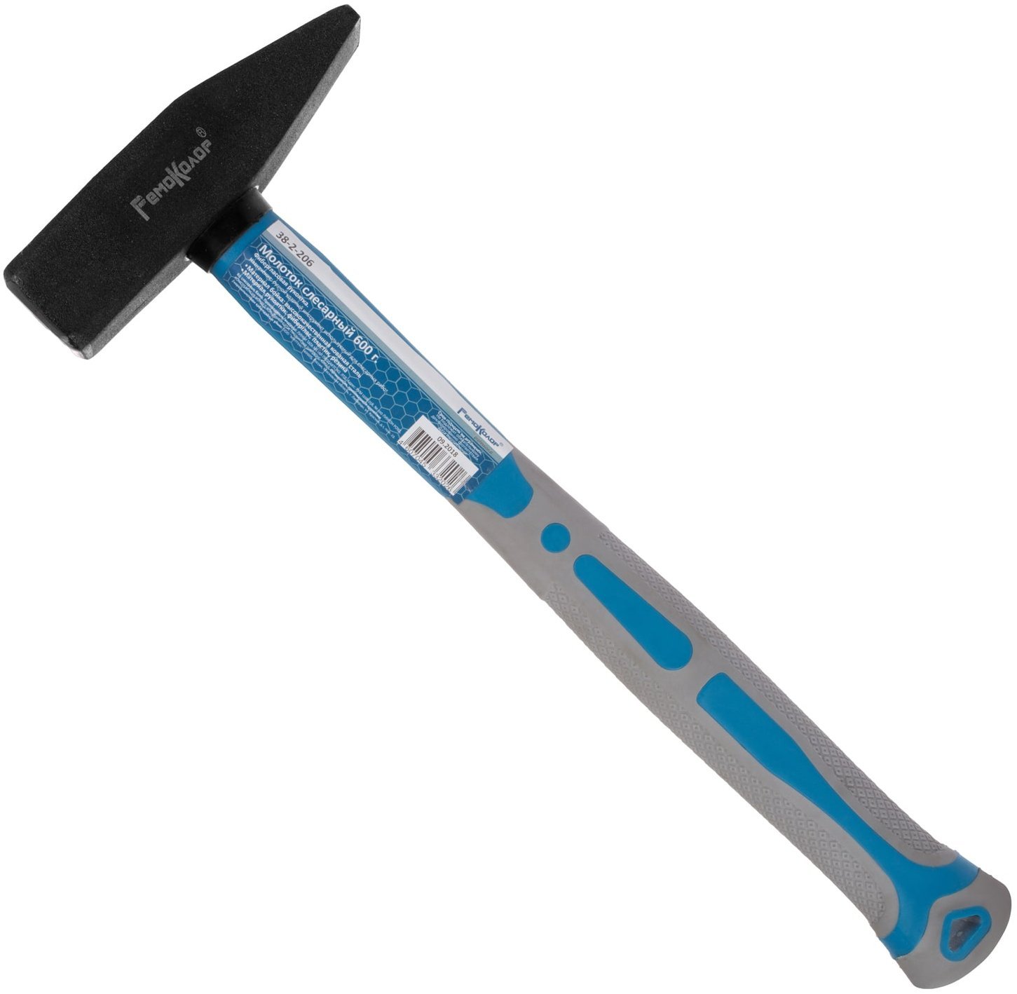 Молоток слесарный с обрезиненной рукояткой из стекловолокна. Головка молотка кованная, закаленная, покрыта черным водным лаком и отшлифована, устойчива к деформации, сколам и износу. Рукоятка из фибергласса (стеклопластика) отличается высокой прочностью, не трескается, не гниёт и не деформируется под воздействием влаги или перепадов температур. Эргономичная форма ручки с антискользящим покрытием обеспечивает надёжный хват даже в перчатках и при работе в сложных условиях